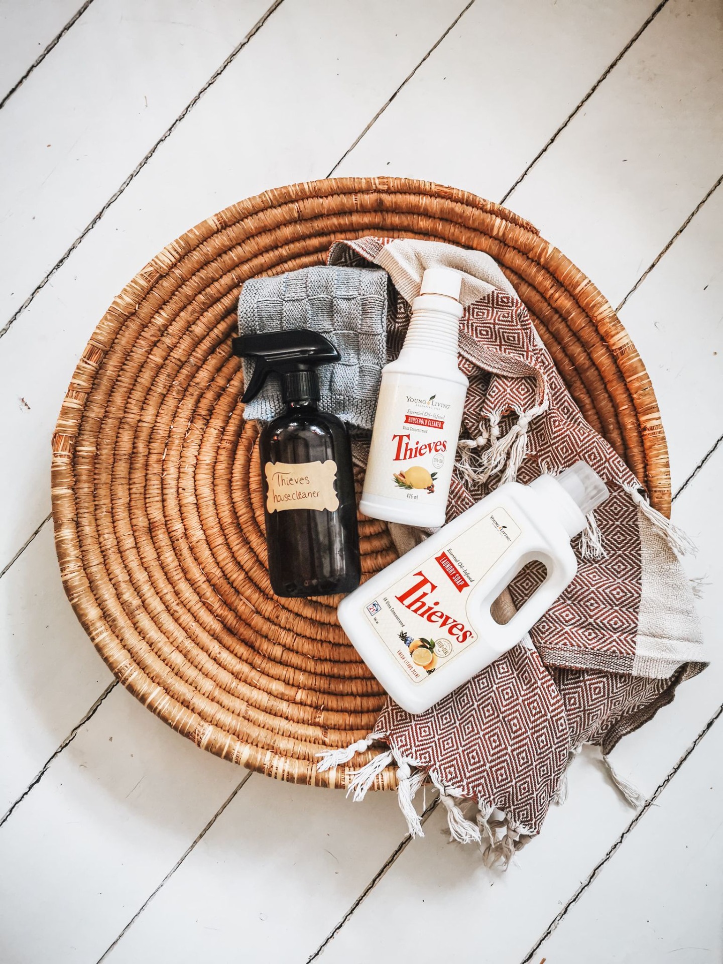 Vi har ligeledes skiftet vores rengøring ud med Thieves Household Cleaner. Denne universal rengøring kan bruges til hele hjemmet, og kan laves til forskellig rengøringsprodukter. Den er lige som vaskemidlet 100% plantebaseret